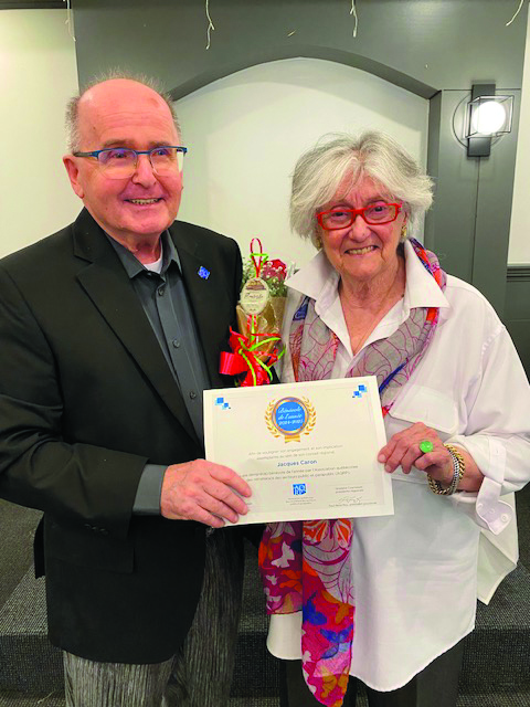 M. Roy nous a aussi parlé de son lien d’amitié avec Mme Ghislaine Cournoyer, qui quittait la présidence régionale. Par ailleurs, M. Jacques Caron, président du secteur de Saint-Jean-sur-Richelieu, a été mis à l’honneur à titre de « Bénévole de l’année » pour la Montérégie. Jacques, en tant que président de son secteur et secrétaire de l’exécutif régional de la Montérégie durant 10 ans, a su démontrer au cours des années son engagement auprès des membres et de ses collègues. Merci, Jacques, pour ton dévouement.