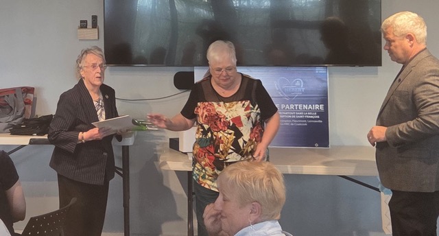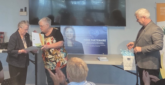 Tout d’abord, le mercredi 22 avril, lors d'une cérémonie tenue au Centre d’interprétation du Marais de la Rivière-aux-Cerises à Magog, elle a reçu la reconnaissance 2026 décernée par la Table de concertation des aînés de l'Estrie.