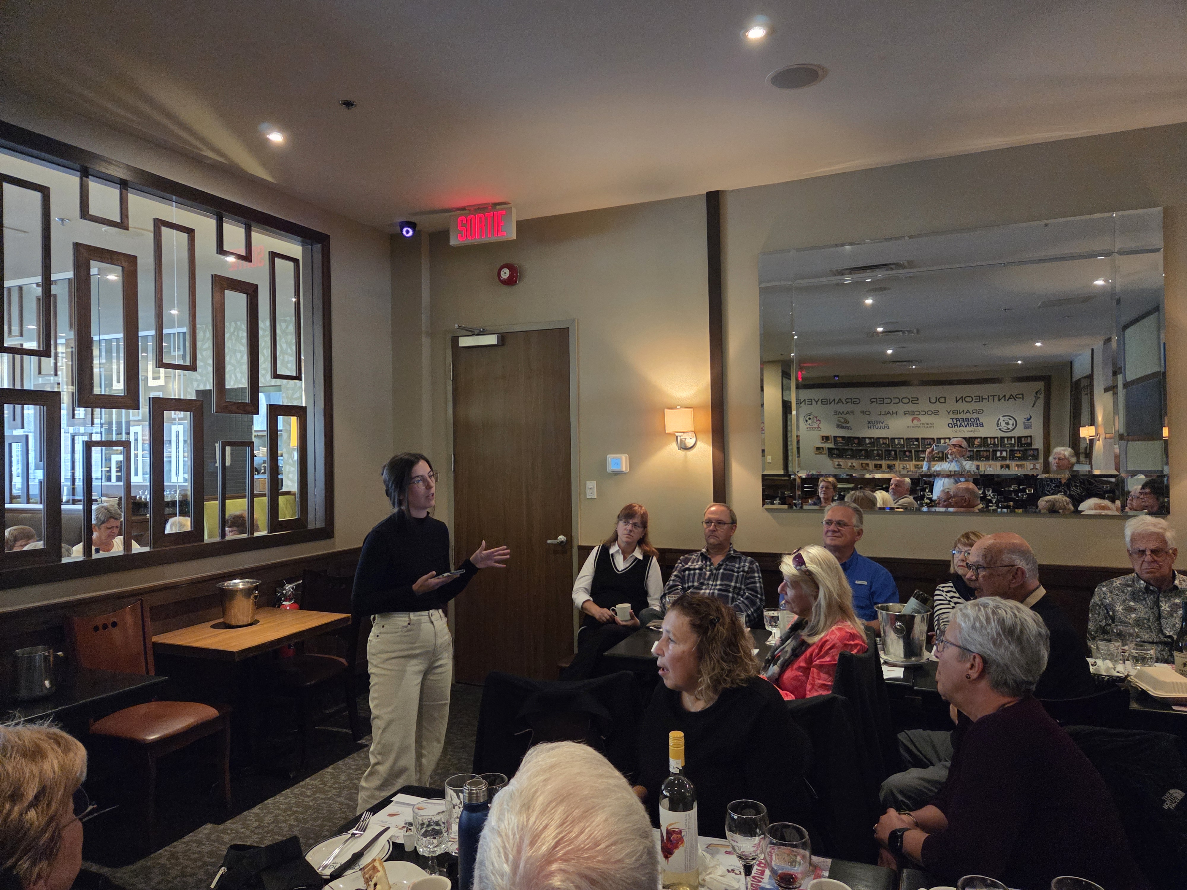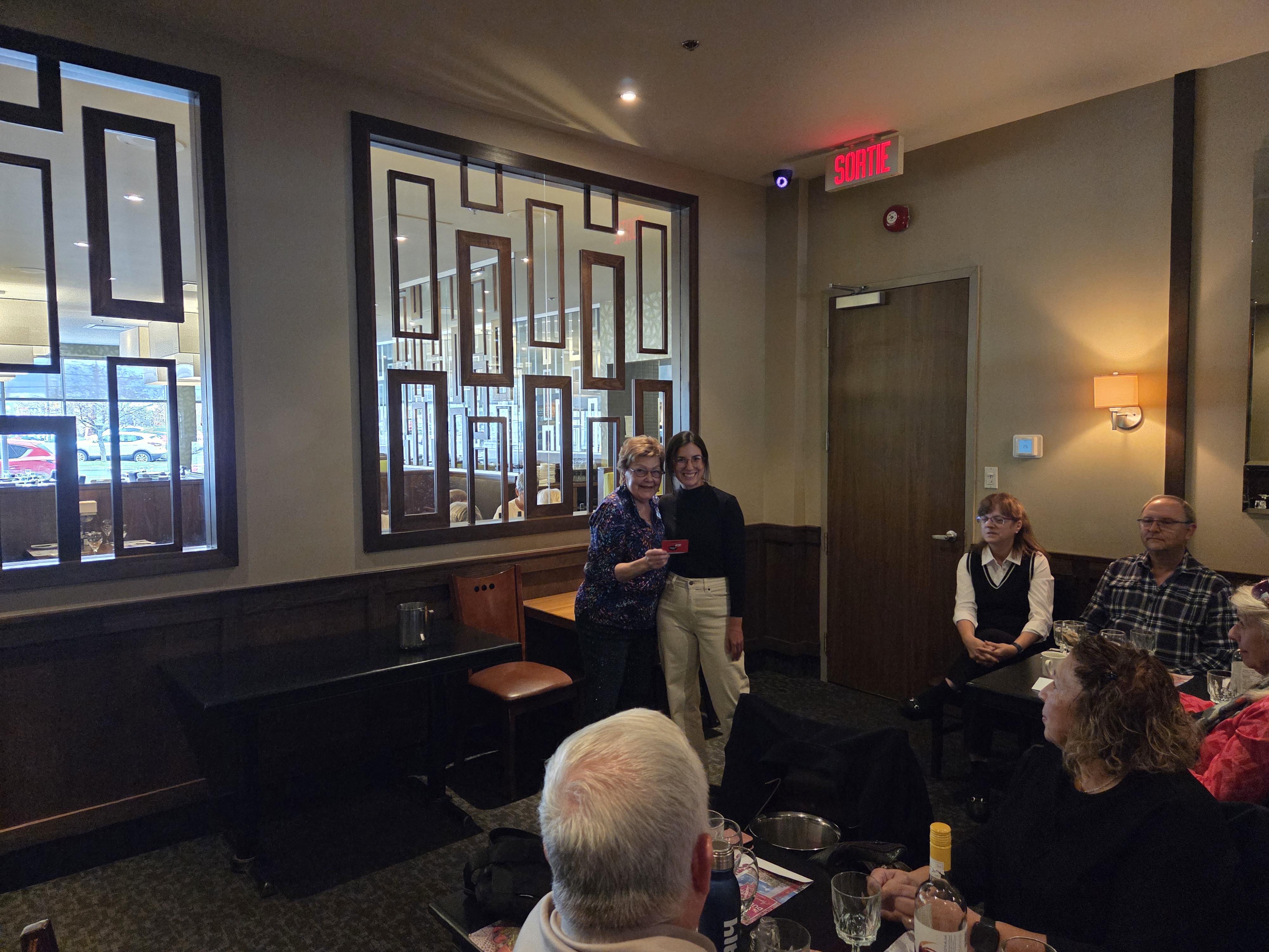 Le secteur Granby reçoit une pharmacienne comme conférencière lors de son dîner de l’amitié. Le 15 octobre dernier, 16 membres du secteur Granby ainsi que 3 invités ont participé au dîner de l’amitié mensuel tenu au restaurant Au vieux Duluth de Granby. À cette occasion, ils ont eu le plaisir d’accueillir Mme Caroline Savoie, pharmacienne, à titre de conférencière. Celle-ci, les a entretenus sur les nouveaux services offerts par les pharmaciennes et pharmaciens, à la suite de changements législatifs récents par lesquels la gamme de services en pharmacie s’est largement étendue.