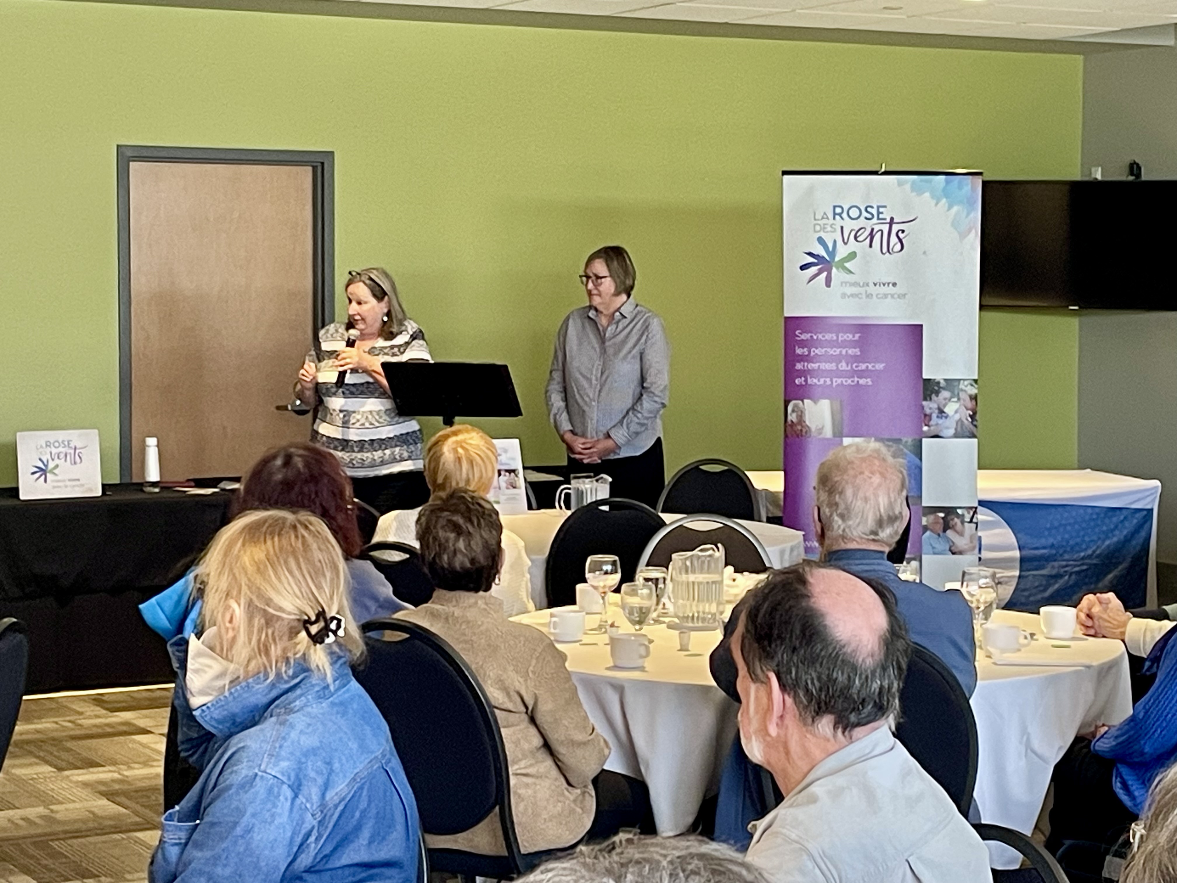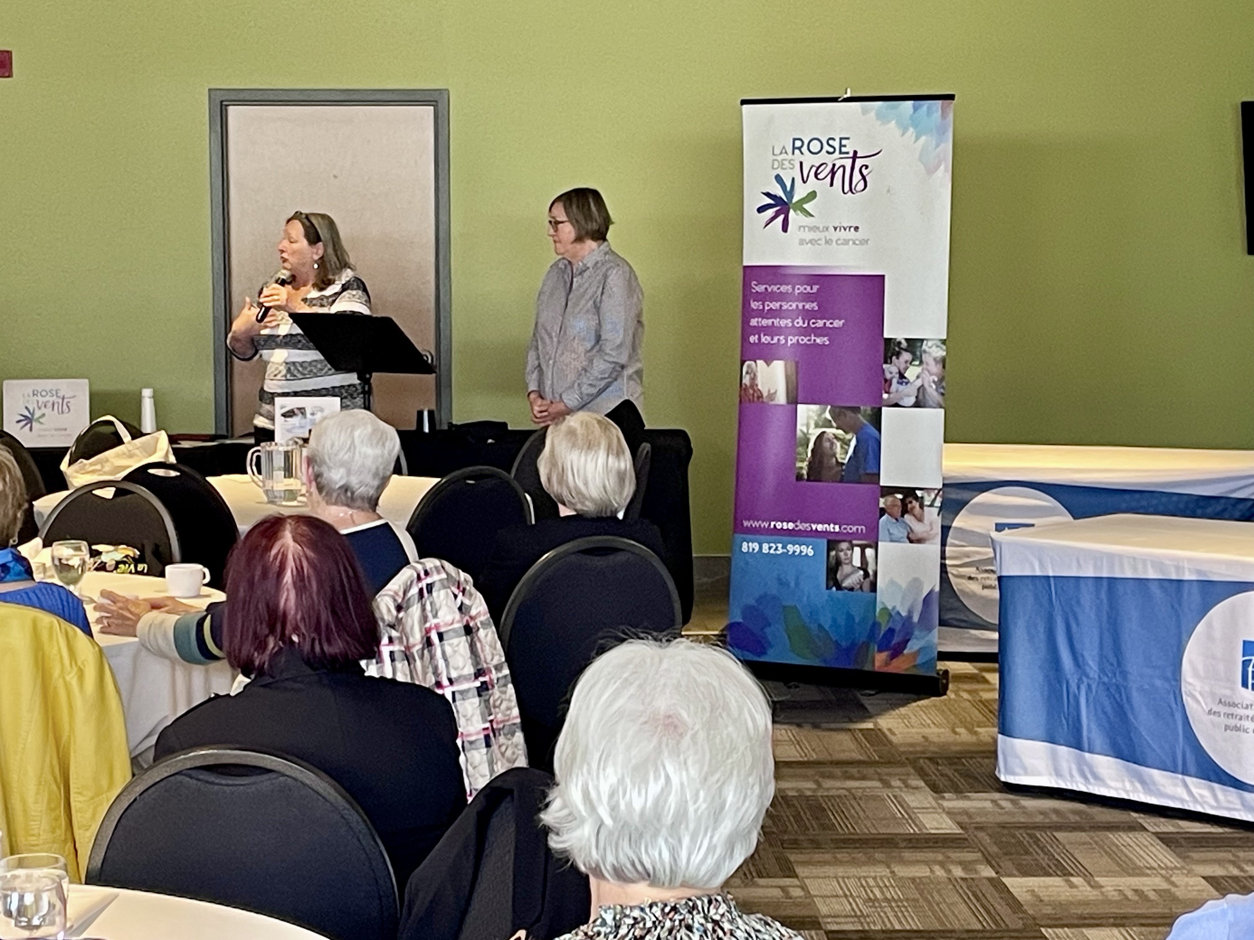 Le secteur Sherbrooke reçoit des représentantes de l’organisme La Rose des Vents comme conférencières à l’occasion de son dîner de l’amitié. Le 16 octobre dernier, 42 membres du Secteur Sherbrooke se sont réunis pour leur dîner conférence mensuel au Complexe funéraire Elkas, à Sherbrooke. Mesdames Guylaine Larocque et Lucie Desalliers, respectivement directrice générale et adjointe administrative de l’organisme La Rose des vents, nous ont entretenus sur leur programme d’aide aux personnes adultes atteintes du cancer et à leurs proches pour mieux vivre avec la maladie. Ils ont notamment présenté les différents services offerts ainsi que la possibilité de contribuer à titre de bénévole.