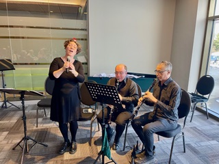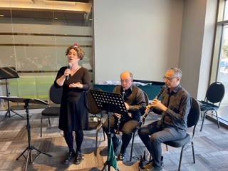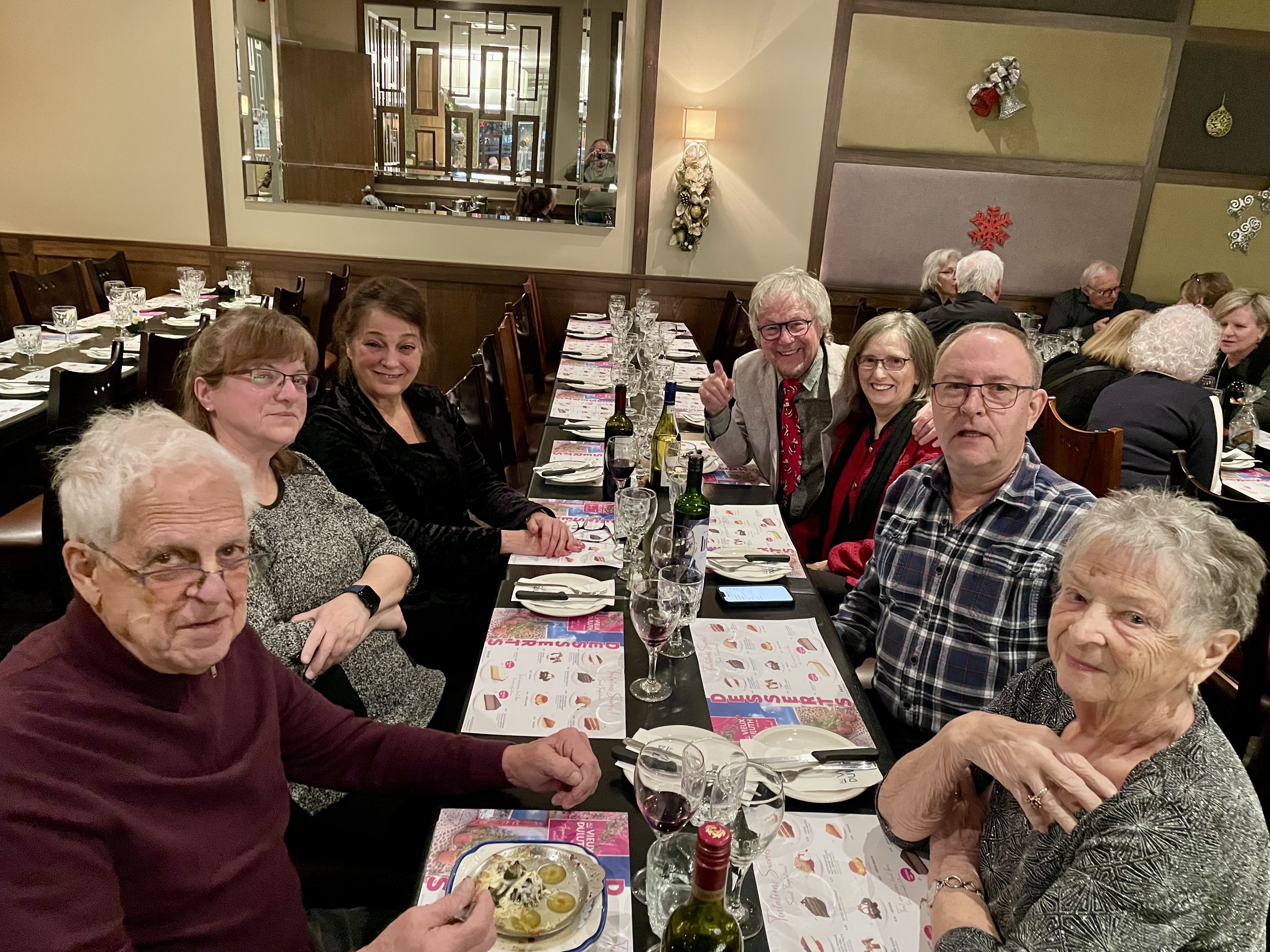 C’est le 18 décembre que près de 80 membres du groupe de Sherbrooke se sont réunis pour fêter Noël à l’occasion de leur dîner mensuel au Complexe funéraire Elkas, à Sherbrooke. Le trio du groupe formé de deux musiciens ainsi que la cantatrice, Maude Fréchette, ont enrichi l’atmosphère du repas par une prestation de chansons saisonnières.