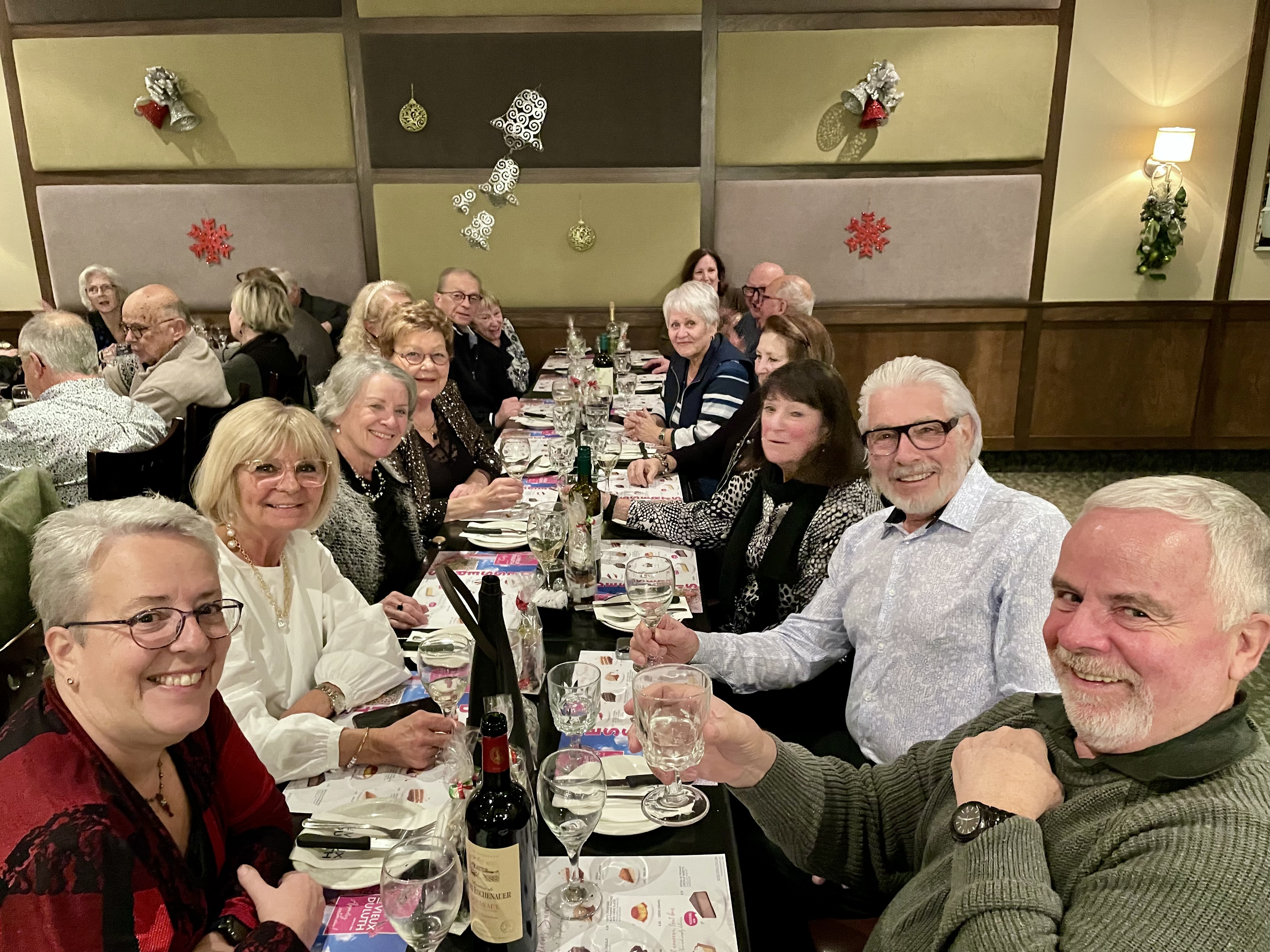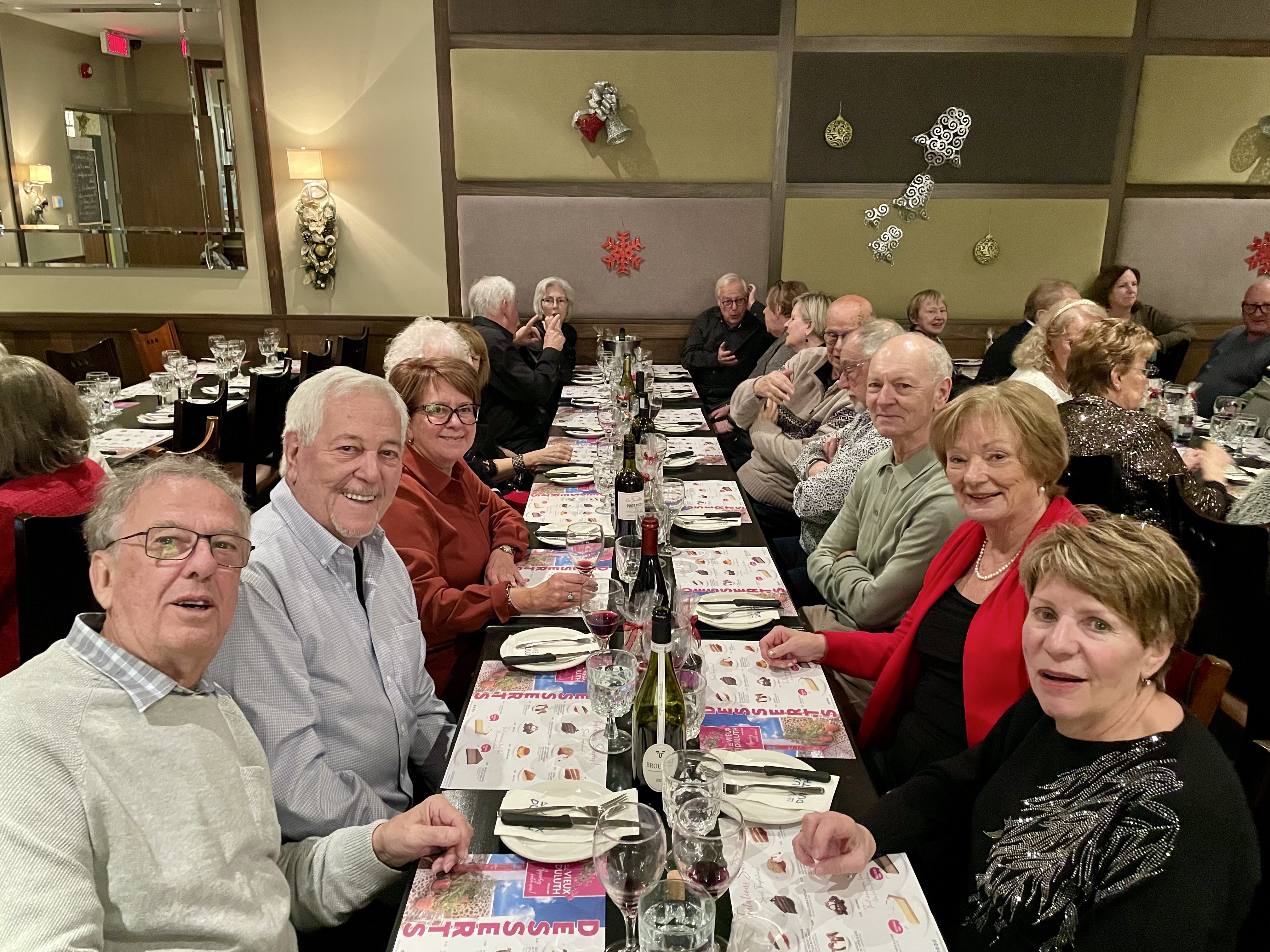 C’est le 11 décembre dernier que 40 membres du secteur Granby ont fêté Noël à l’occasion d’un souper de l’amitié tenu au restaurant Au vieux Duluth de Granby. Marquée par une ambiance festive, cette rencontre était ponctuée de cadeaux de la saison distribués par tirage et agrémentée d’une musique entraînante sur laquelle certains ont pu se dégourdir les jambes.