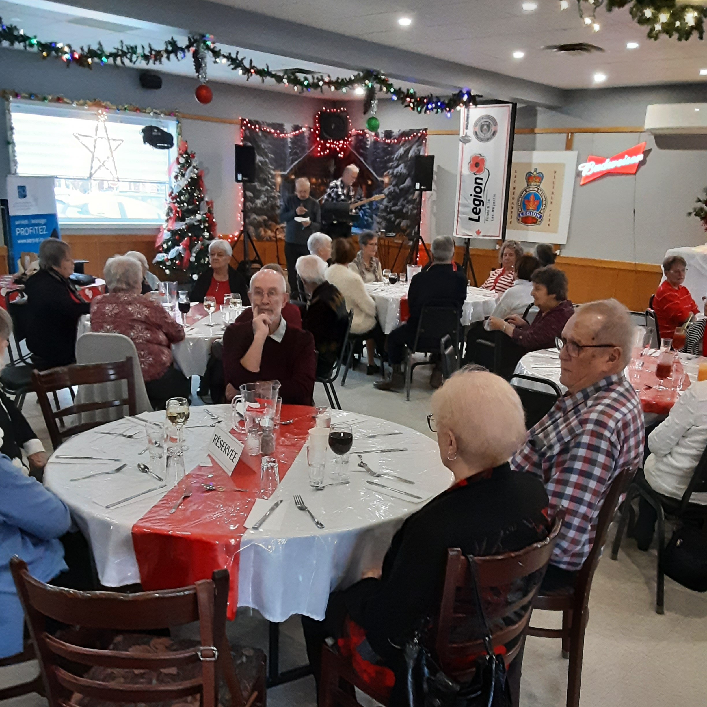 Le 17 décembre dernier, une soixantaine de membres du secteur du Granit ont fêté Noël lors du dîner de l’amitié mensuel tenu à la Légion canadienne de Lac-Mégantic. Un succulent repas a été servi aux convives par le traiteur et son équipe; en outre, le tout a été agrémenté par un accompagnement musical de circonstances.
